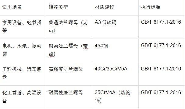 Kľúčom k použitiu prírubových matíc je „výber správneho typu správnej inštalácie prispôsobenej pracovným podmienkam“, aby sa predišlo uvoľneniu alebo poruche v dôsledku nesprávneho výberu alebo prevádzky.